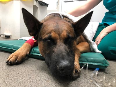 The surgery was rapidly completed and Mikey was recovered from the anaesthesia and transferred over to the Bromsgrove branch for close monitoring and intensive care treatment.